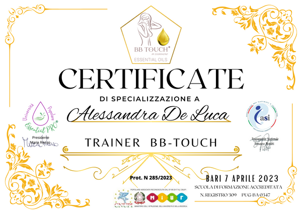 Sono qui per presentarti il nuovo trattamento BBTOUCH® (body balance touch), che ha come focus l’utilizzo degli oli essenziali puri per migliorare la vita delle persone a cui vogliamo bene.